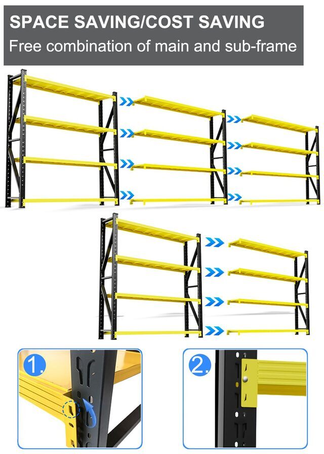 ● Main and sub-shelf structure, save storage land investment, sub-shelf directly stuck in the main frame column holes, combined with side-by-side use, note: sub-shelf can not be used alone, need to be used with the main frame.