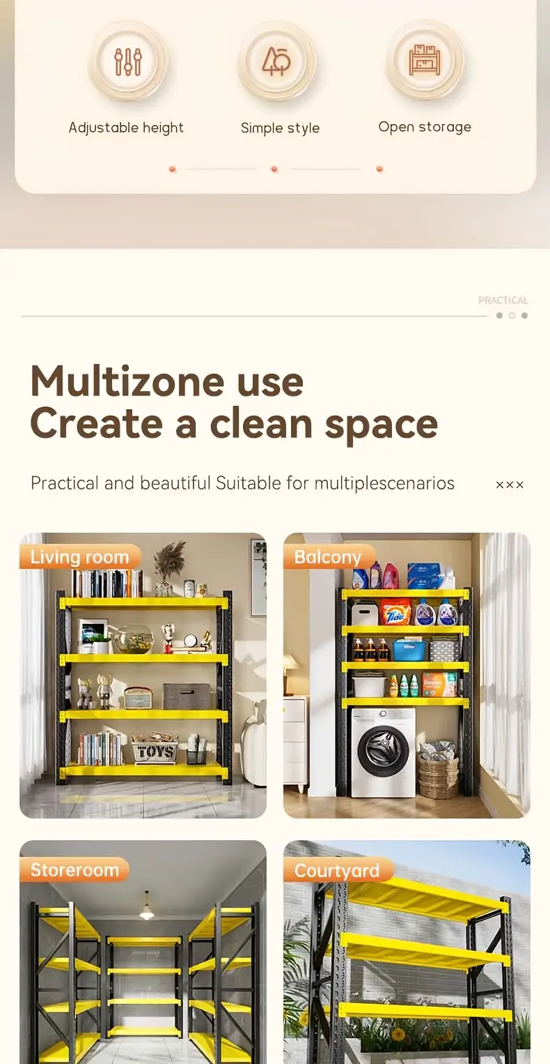 ● You can use them in industrial Warehouse, garage, bathroom, pantry, kitchen and storage room, for organization and storage. Stronger and easier to clean, metal shelves can withstand moisture, dirt and heavy loads.